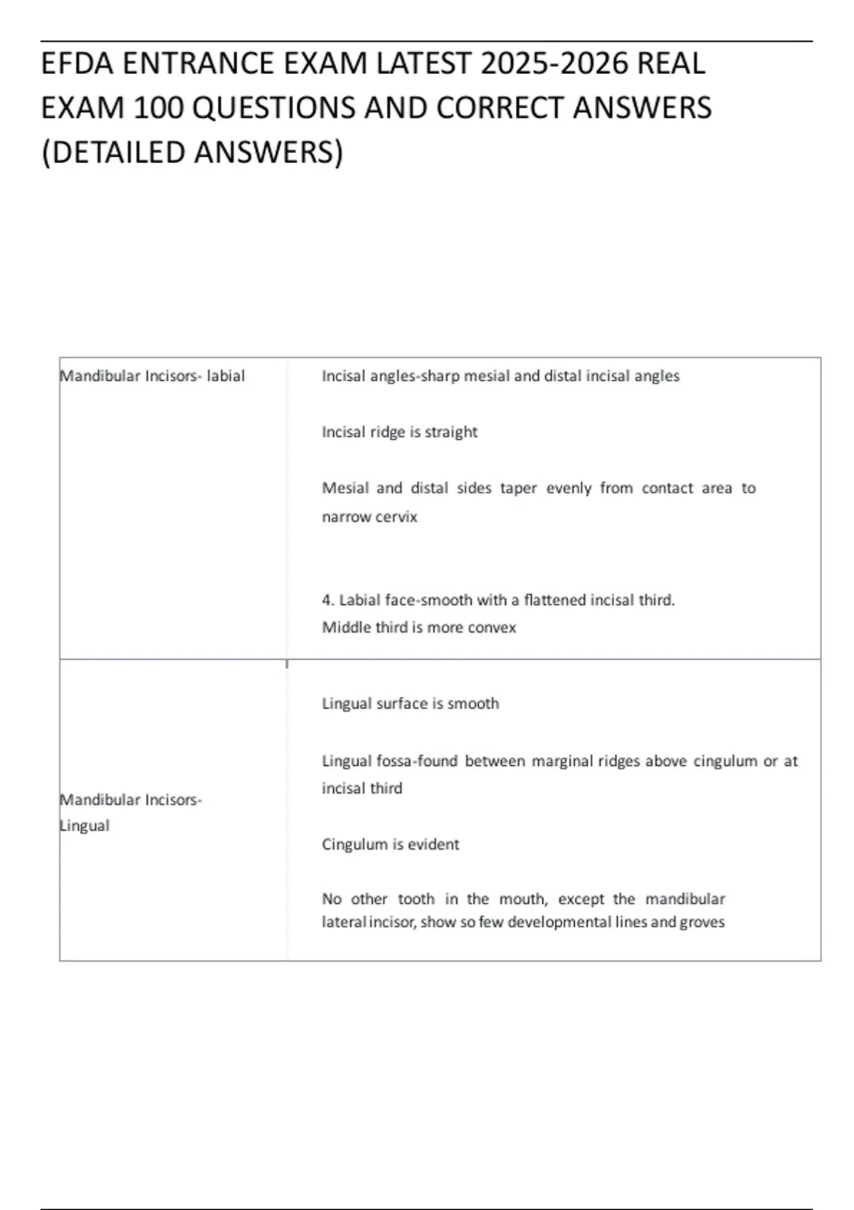 Mandibular Incisors- labial Incisal angles-sharp mesial and distal incisal angles