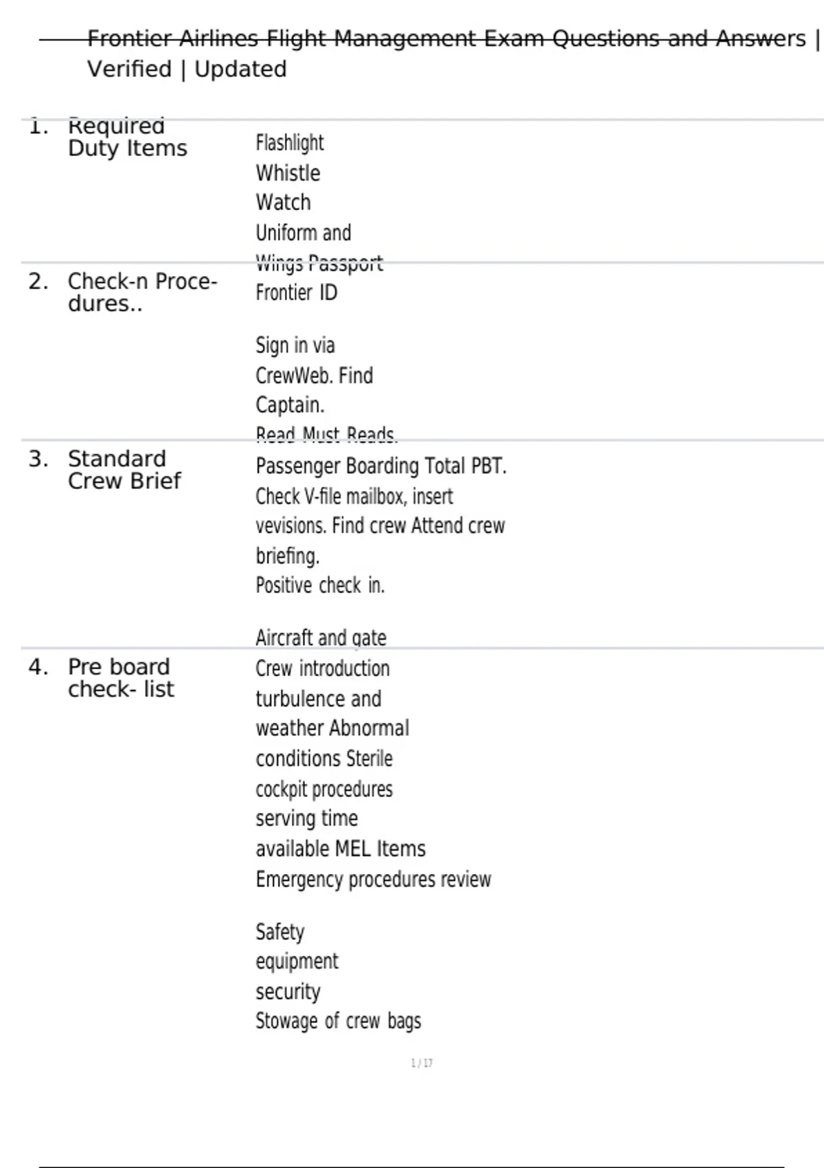 , Frontier Airlines Flight Management Exam Questions and Answers |