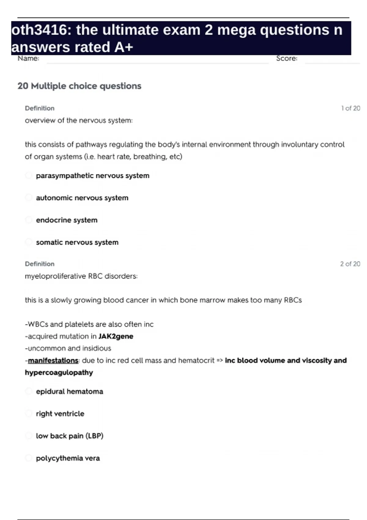 oth3416 the ultimate exam 2 mega questions n answe