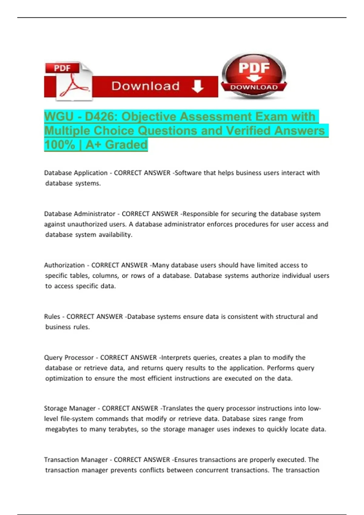 WGU - D426: Objective Assessment Exam with