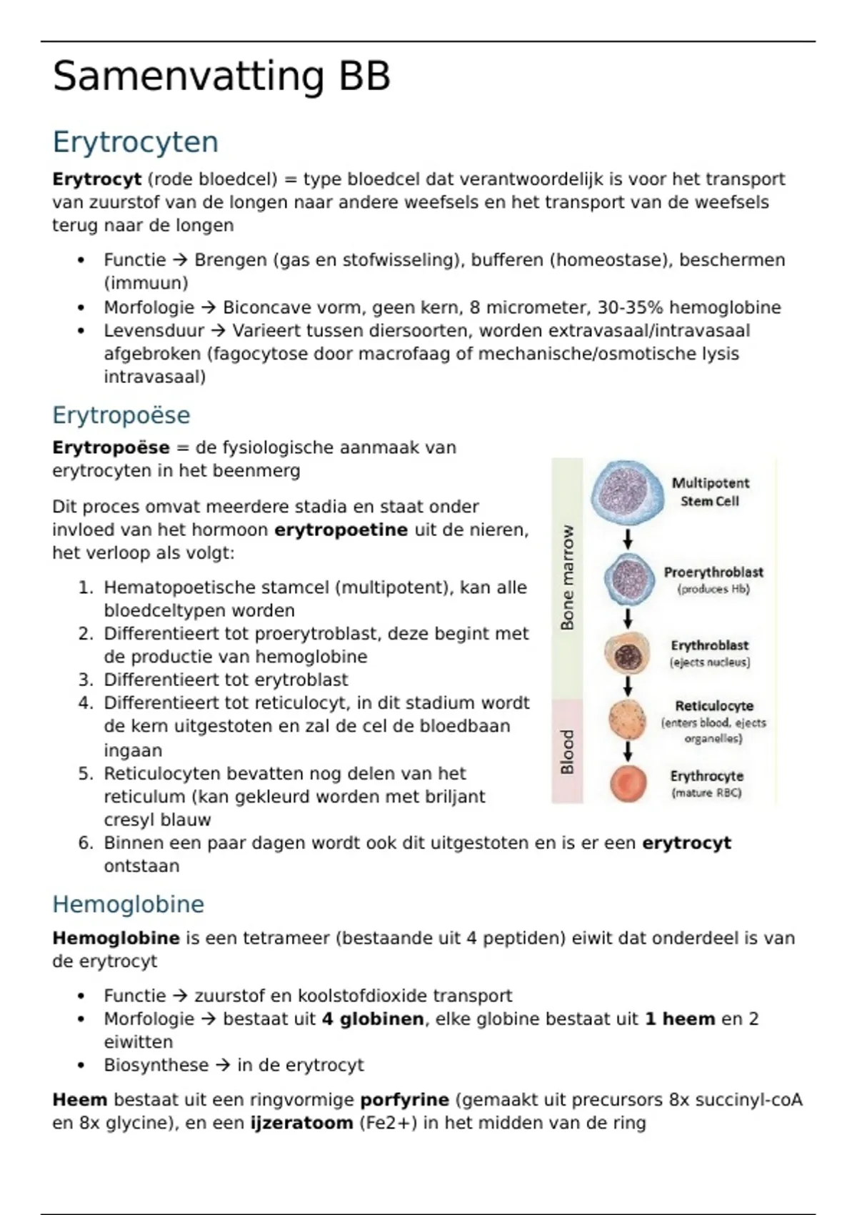 Samenvatting van BB (Bloed en Bloedvormende Organen), van Diergeneeskunde bachelor jaar 1. Compleet met schema's en plaatjes, ook inclusief ziekteleer.