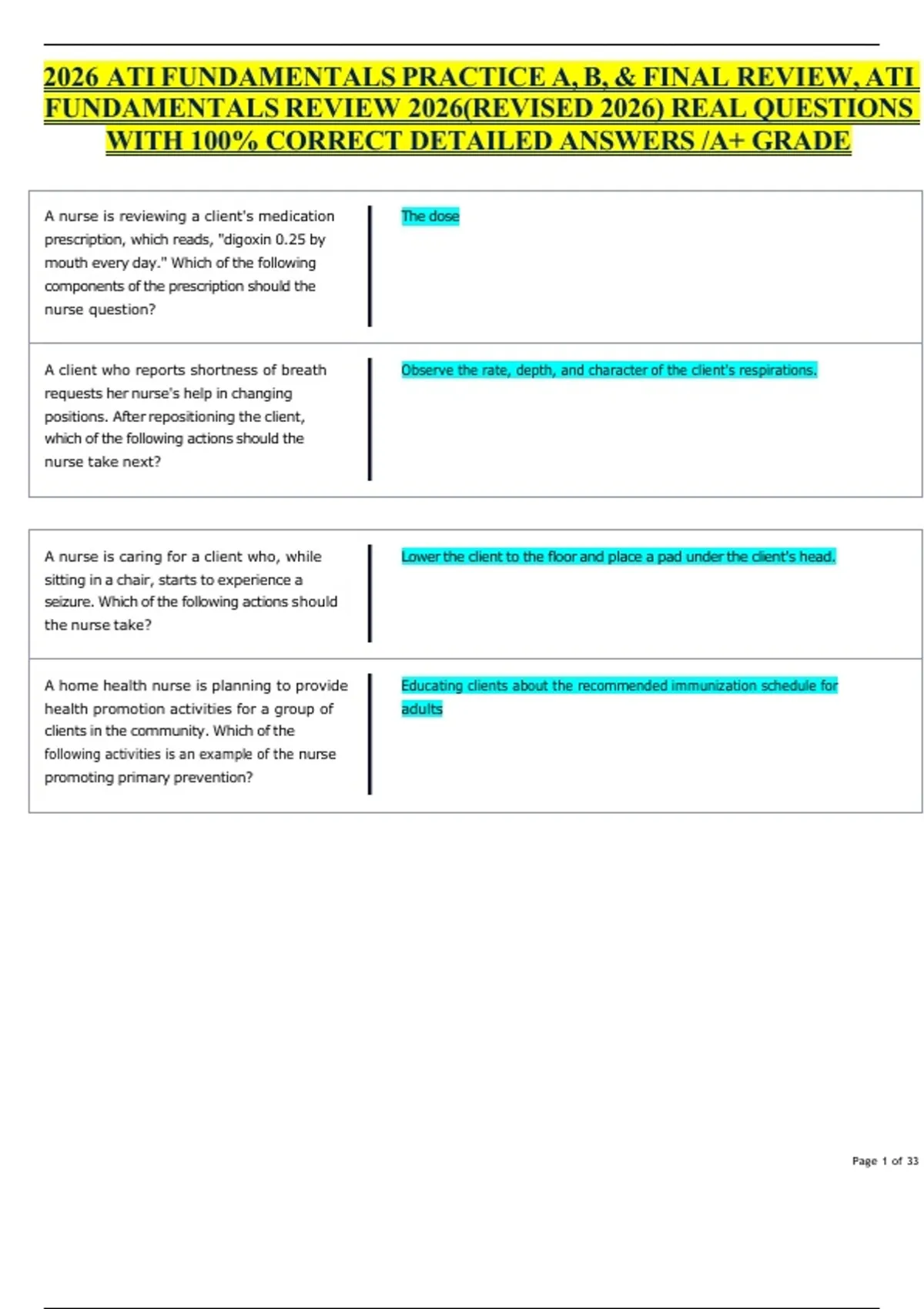 2026 ATI FUNDAMENTALS PRACTICE A, B, & FINAL REVIEW, ATI