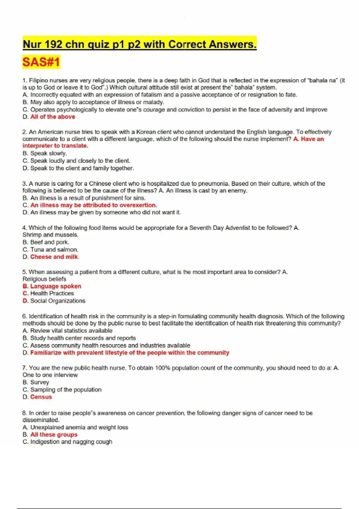Nur 192 chn quiz p1 p2 with Correct Answers.Nur 192 chn quiz p1 p2 with Correct Answers.