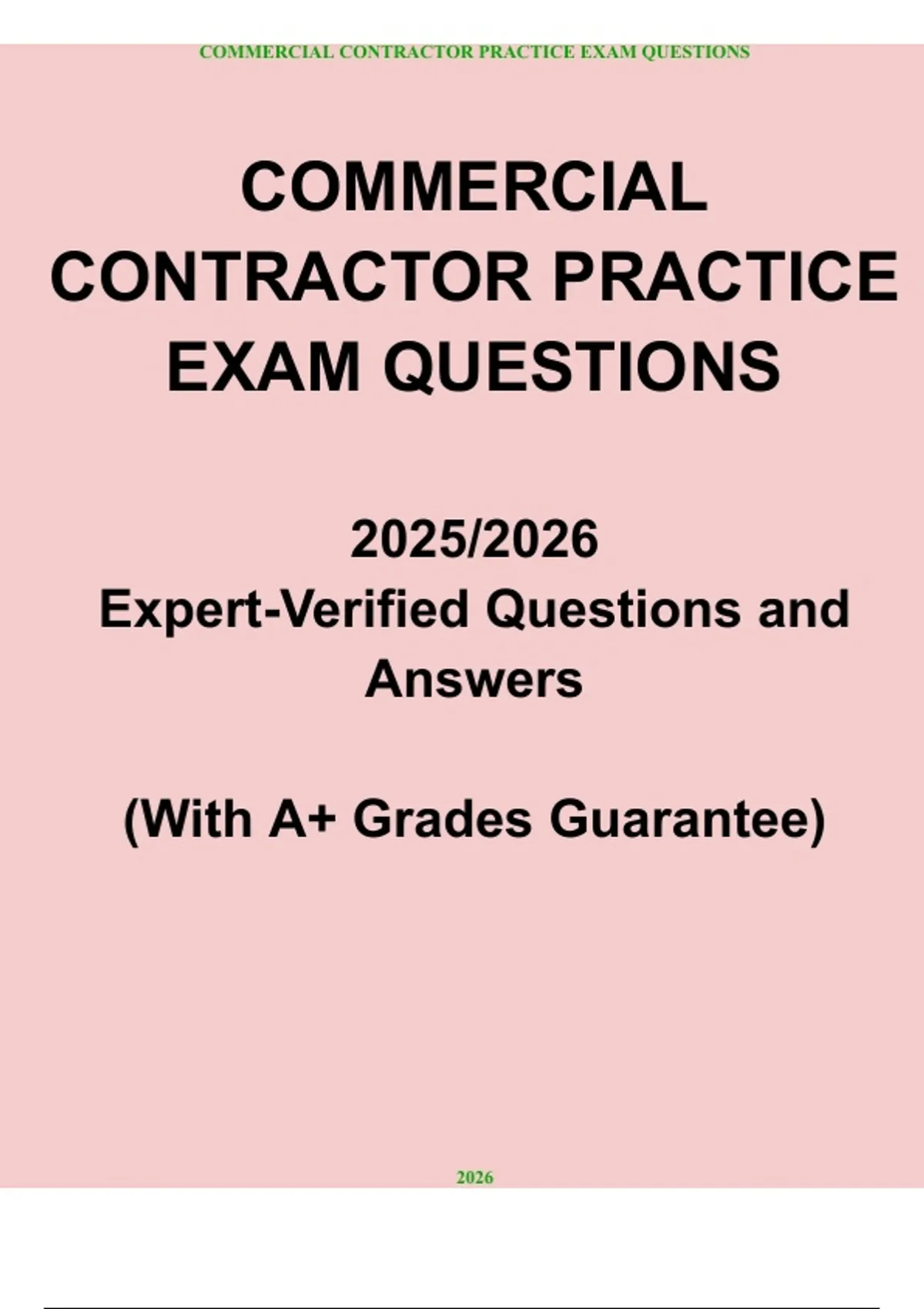 ,COMMERCIAL CONTRACTOR PRACTICE EXAM QUESTIONS