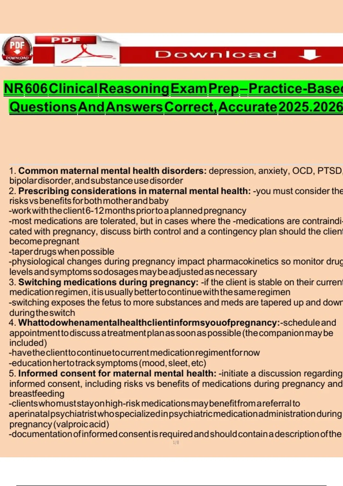 NR 606 Clinical Reasoning Exam Prep – Practice-Based Questions and answers correct, accurate