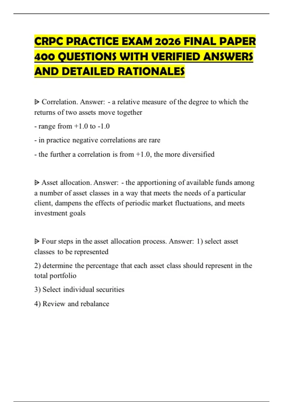 CRPC PRACTICE EXAM 2026 FINAL PAPER 400 QUESTIONS WITH VERIFIED ANSWERS AND DETAILED RATIONALES