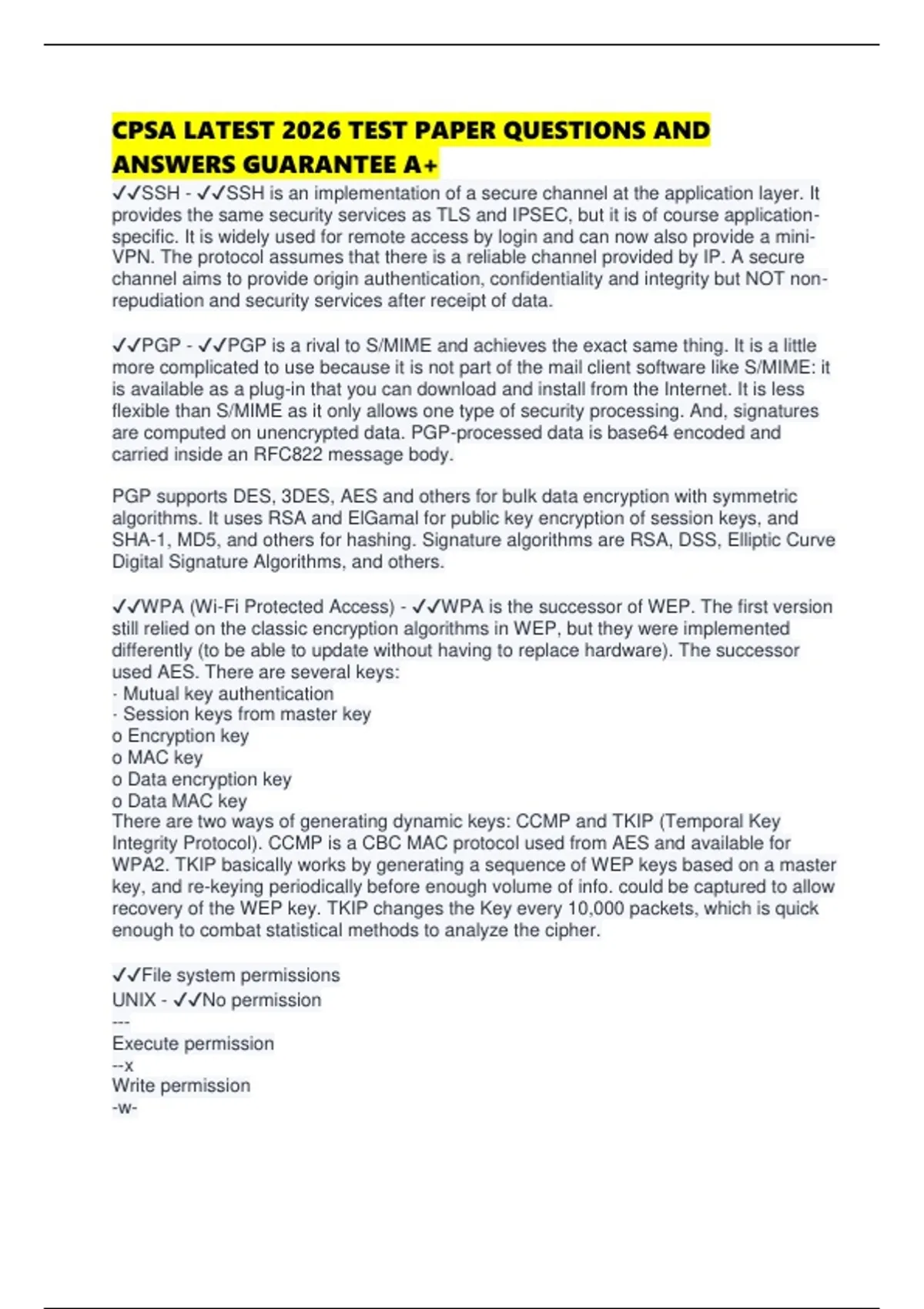 ✔✔WPA (Wi-Fi Protected Access) - ✔✔WPA is the successor of WEP. The first version