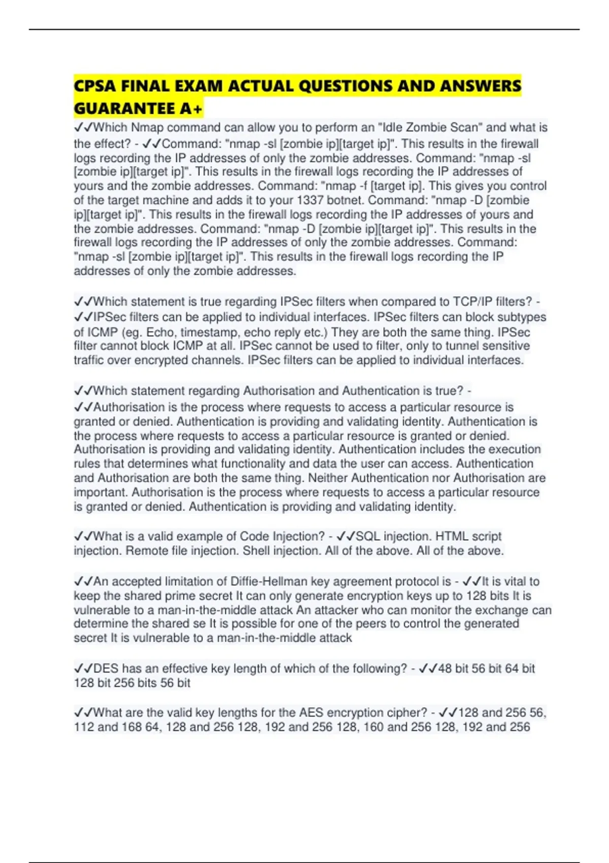 CPSA FINAL EXAM ACTUAL QUESTIONS AND ANSWERS