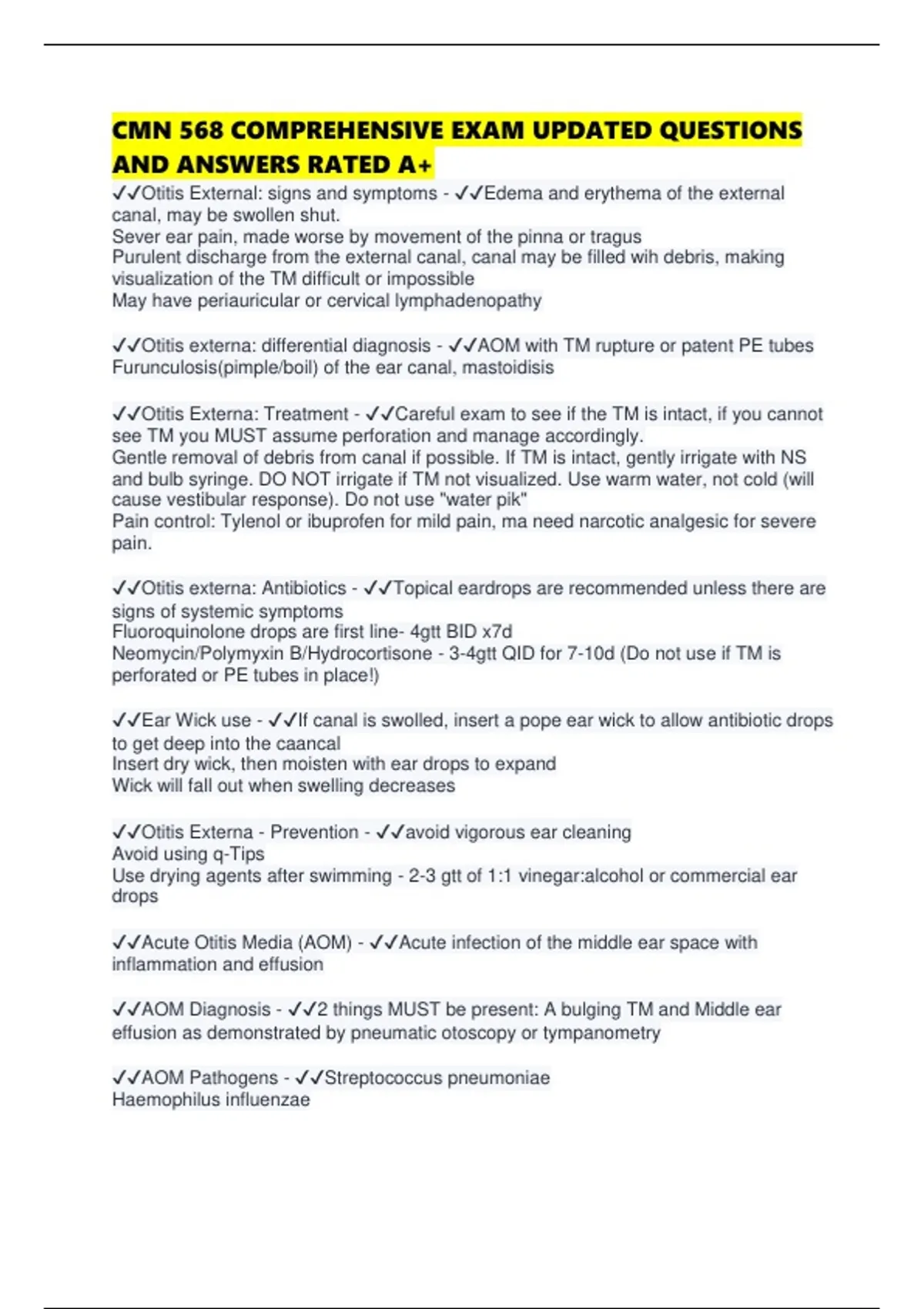 CMN 568 COMPREHENSIVE EXAM UPDATED QUESTIONS AND ANSWERS RATED A+