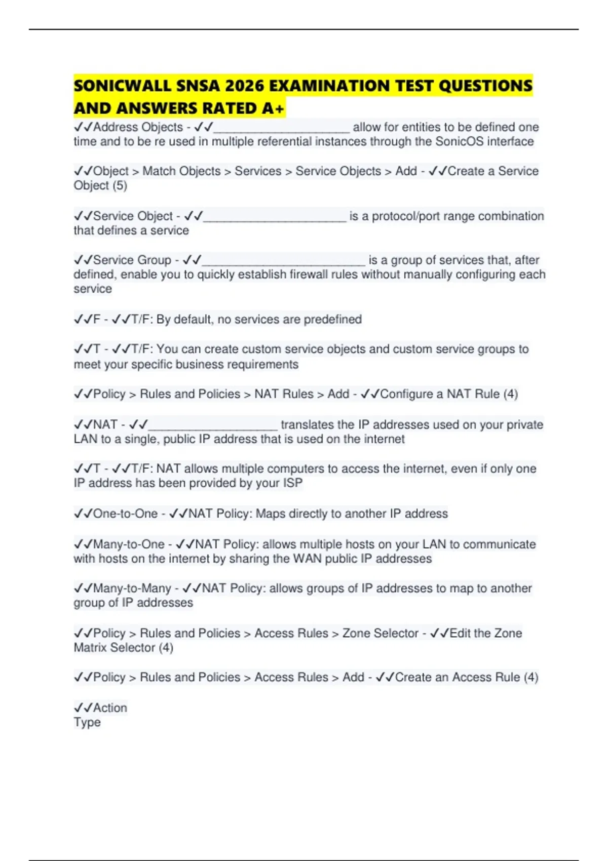 SONICWALL SNSA 2026 EXAMINATION TEST QUESTIONS AND ANSWERS RATED A+