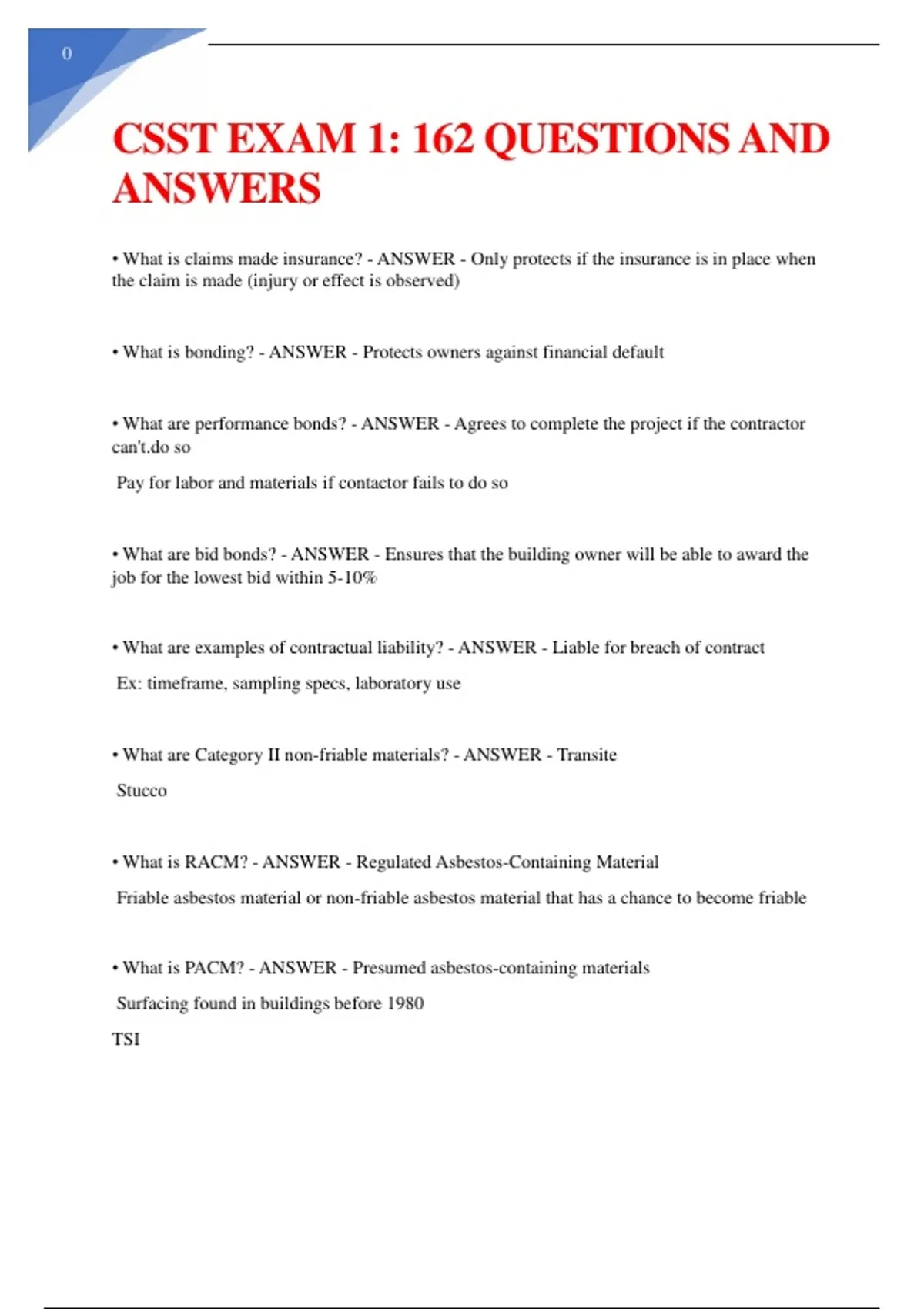 Download CSST Exam 1 PDF with 162 CSST questions and answers designed for effective CSST practice exam preparation. This CSST study guide PDF helps candidates prepare for the CSST certification exam, covering key concepts, test questions, and building inspection exam topics for confident success.