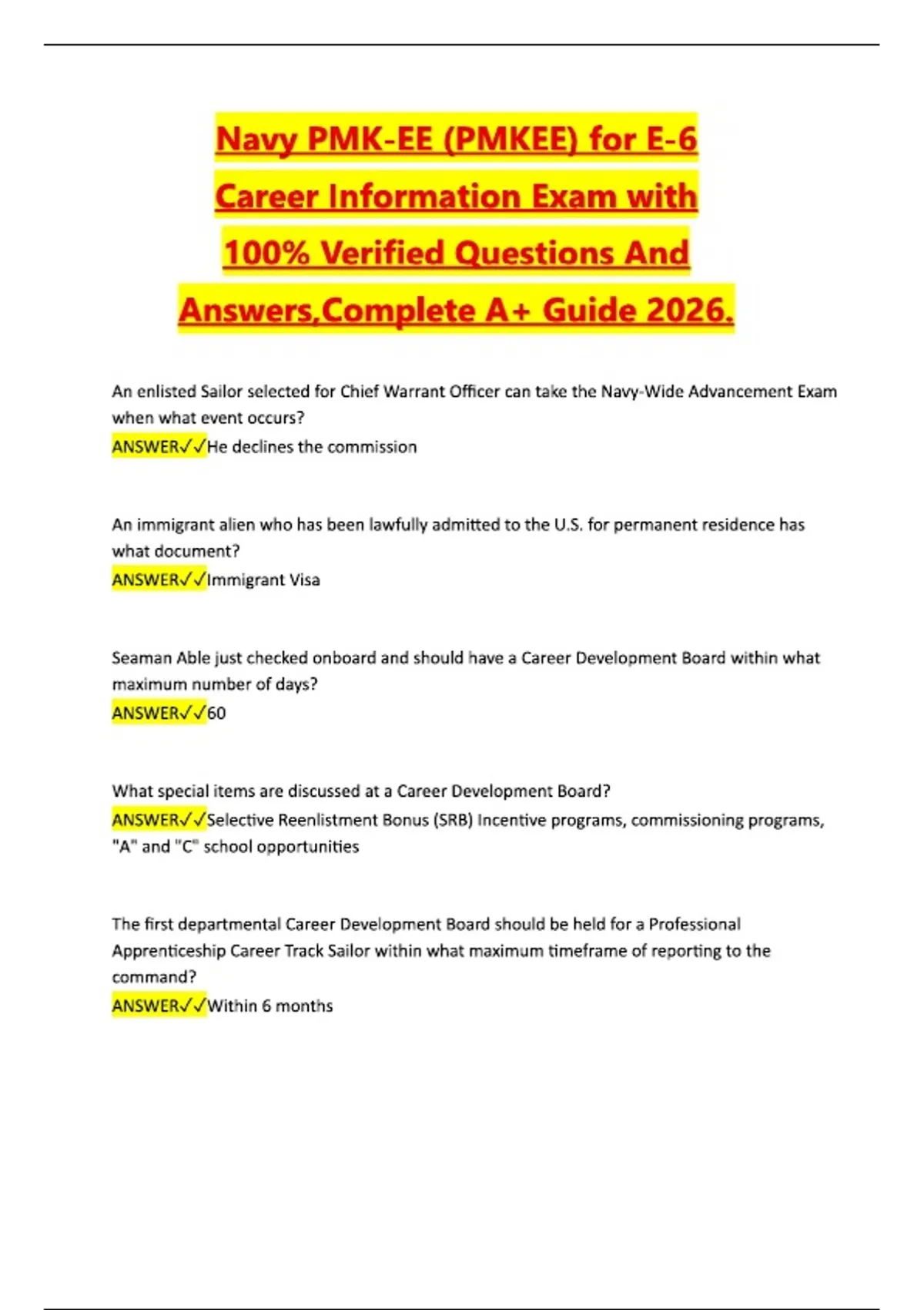 Navy PMK-EE (PMKEE) for E-6 Career Information Exam with 100% Verified Questions And Answers,Complete A+ Guide 2026. Navy PMK-EE (PMKEE) for E-6 Career Information Exam with 100% Verified Questions And Answers,Complete A+ Guide 2026. Navy PMK-EE (PMKEE) for E-6 Career Information Exam with 100% Verified Questions And Answers,Complete A+ Guide 2026.