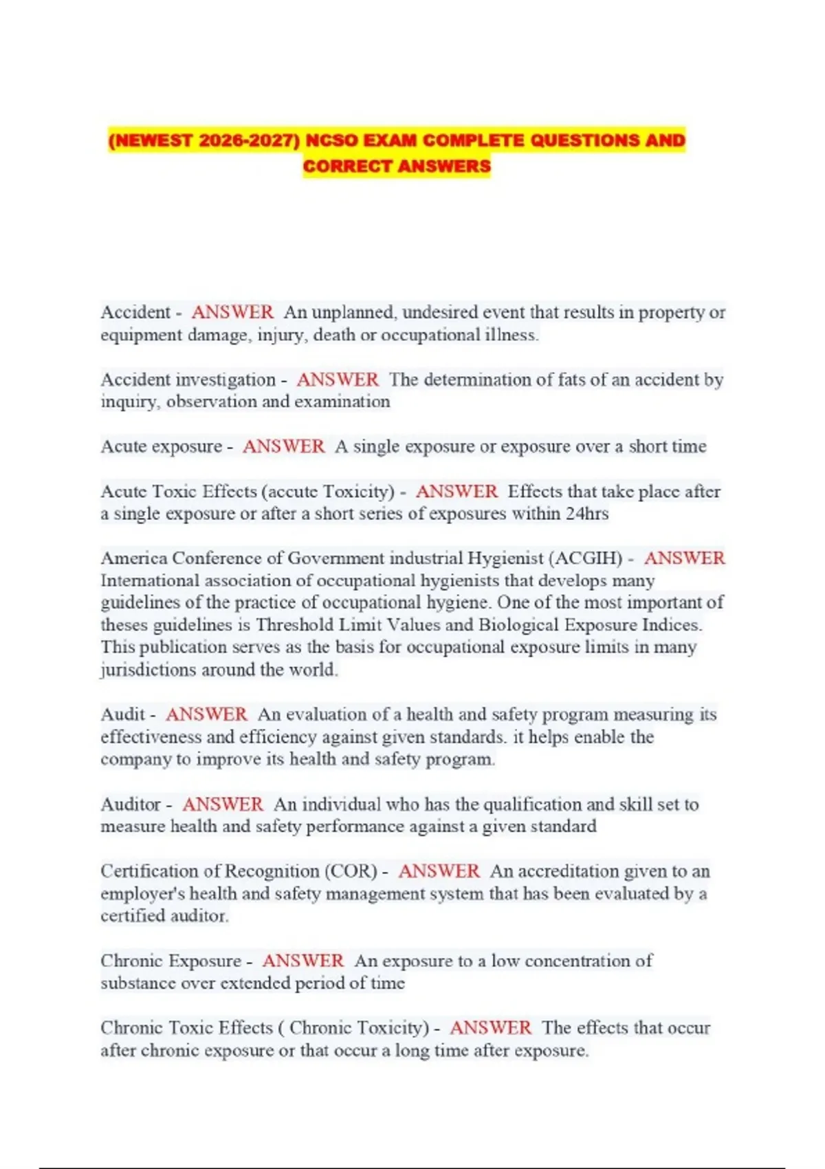 (NEWEST ) NCSO EXAM COMPLETE QUESTIONS AND CORRECT ANSWERS