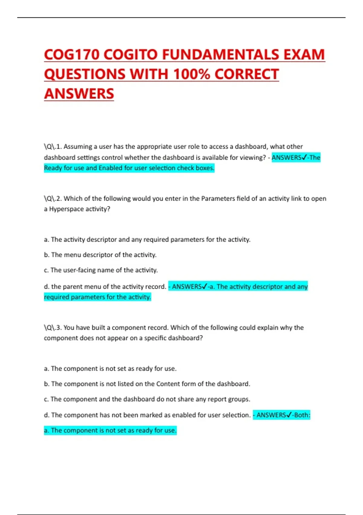 COG170 COGITO FUNDAMENTALS EXAM QUESTIONS WITH 100% CORRECT ANSWERS |