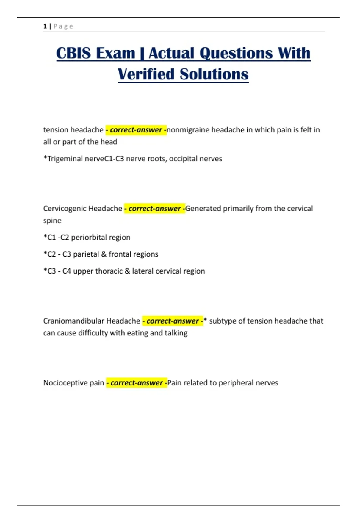 Cervicogenic Headache - correct-answer -Generated primarily from the cervical