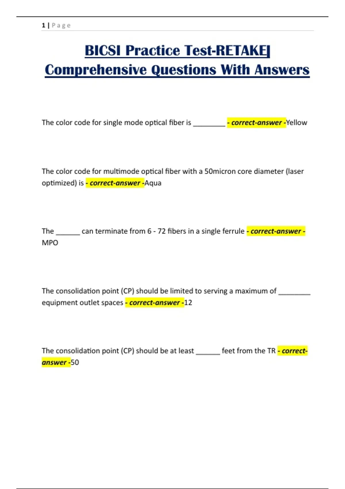 BICSI Practice Test-RETAKE| Comprehensive Questions With Answers