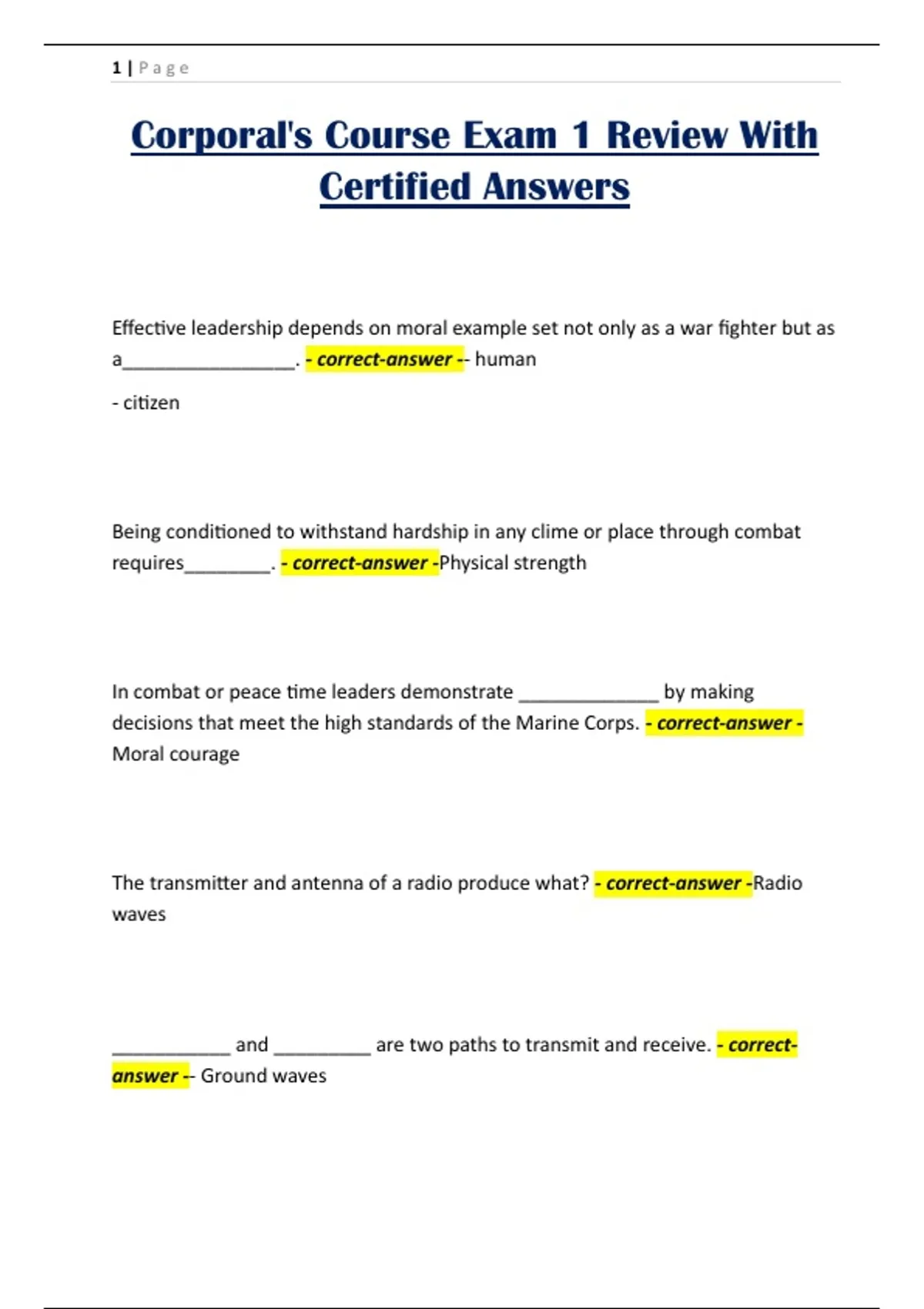 Corporal's Course Exam 1 Review With