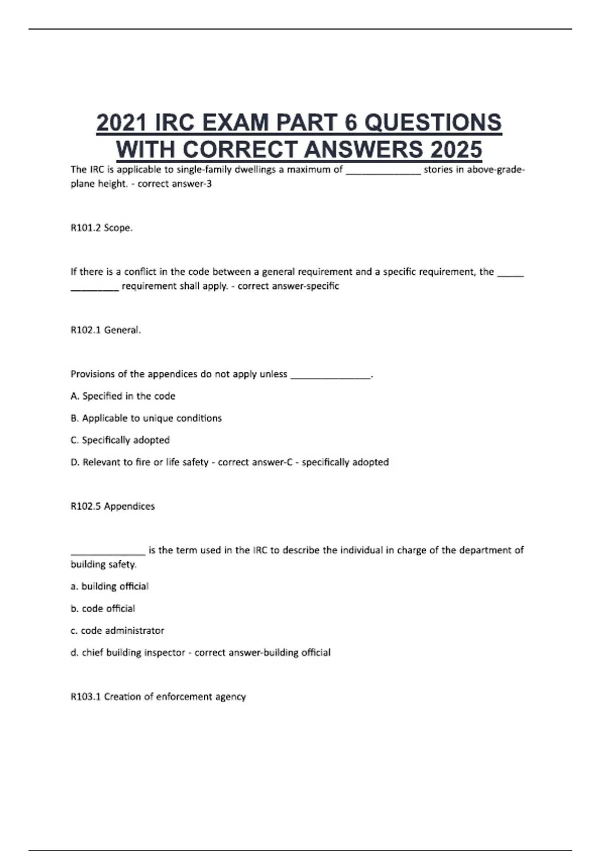 2021 IRC EXAM PART 6 QUESTIONS WITH CORRECT ANSWERS 2025.