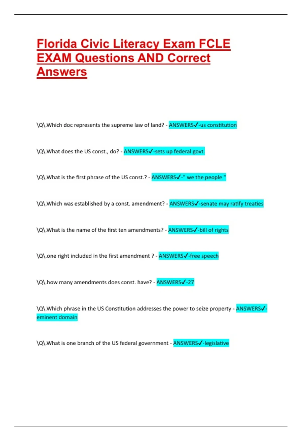 \Q\.Which doc represents the supreme law of land? - ANSWERS✔-us constitution