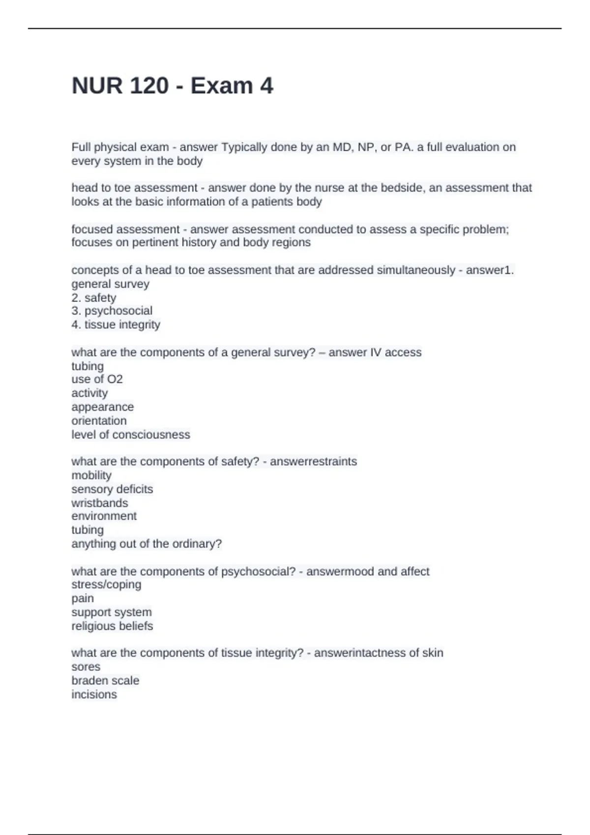 Exam of 14 pages for the course NUR 120 at NUR 120 (NUR 120 - Exam 4)