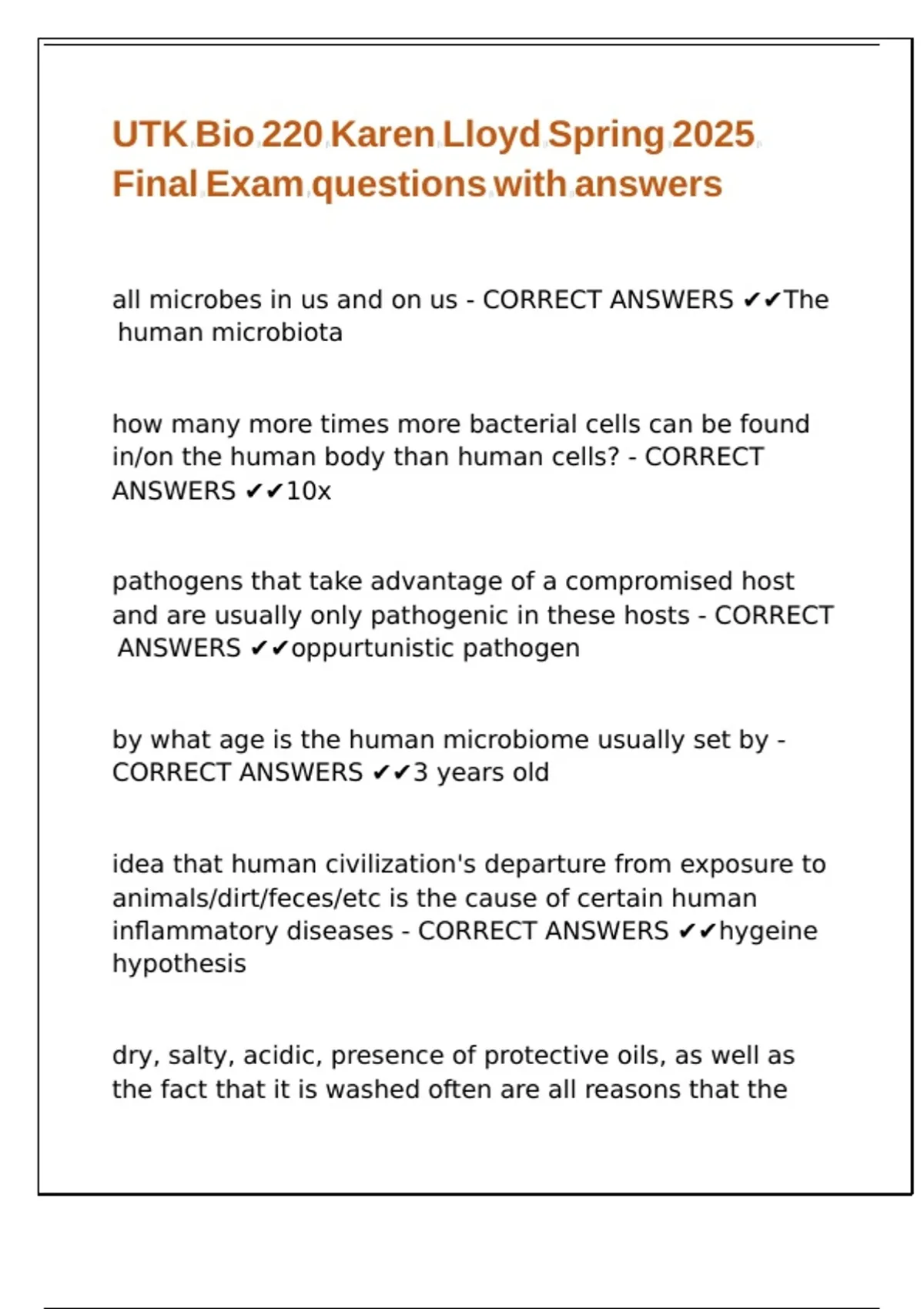 UTK Bio 220 Karen Lloyd Spring 2025 Final Exam questions with answers.