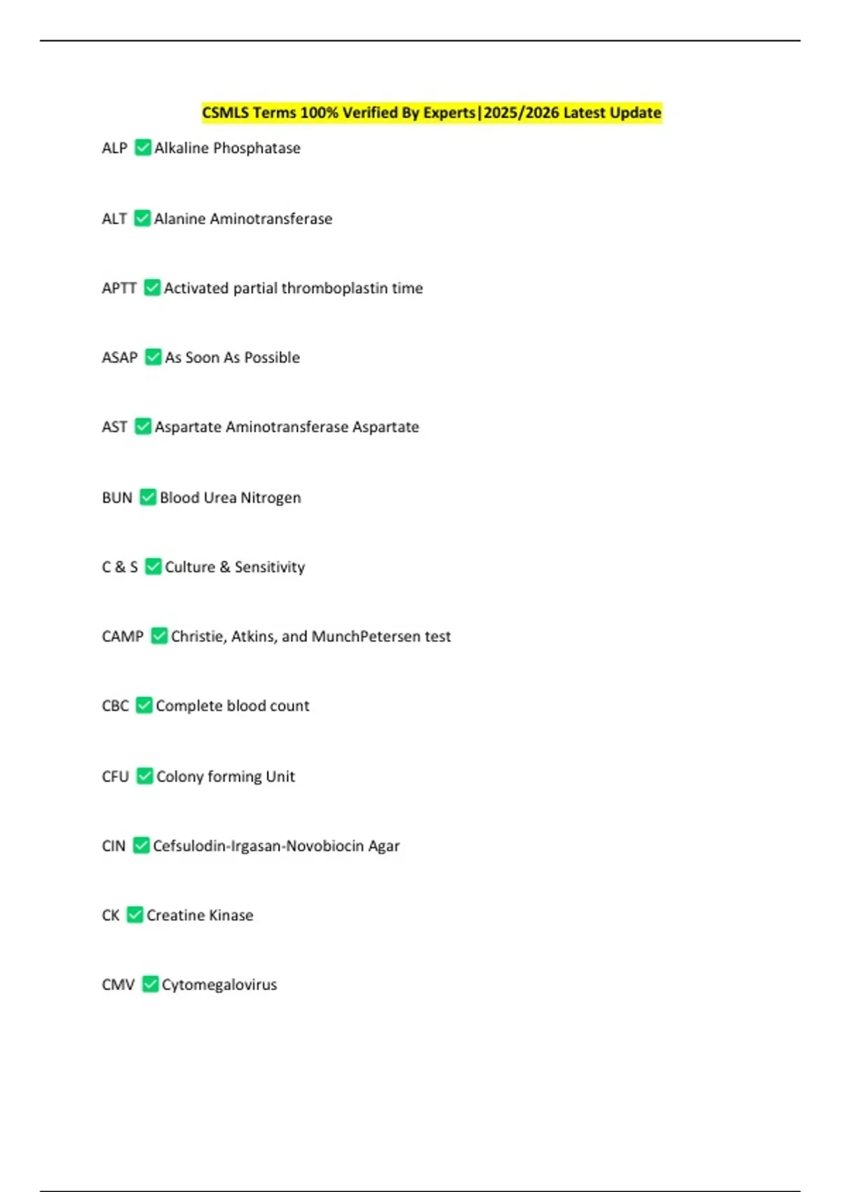 CSMLS Terms 100% Verified By Experts|2025/2026 Latest Update