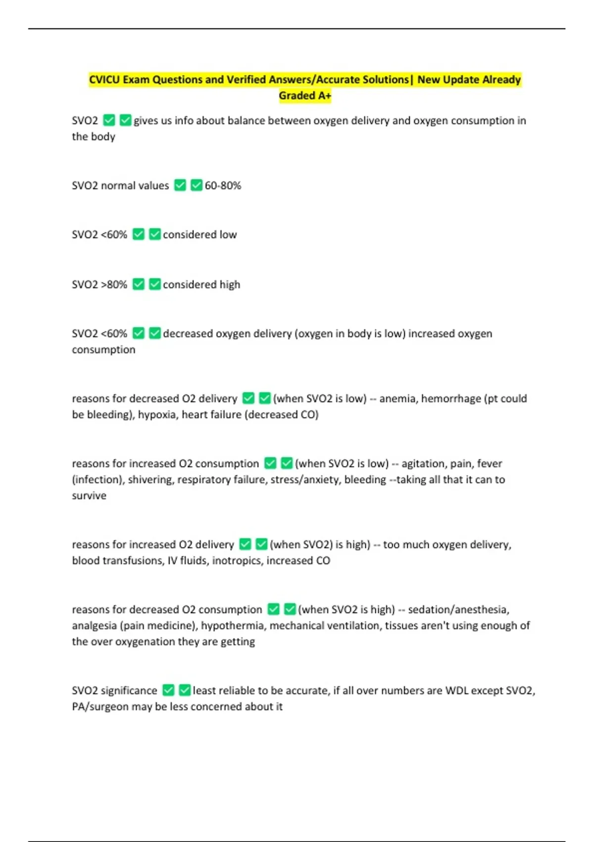 CVICU Exam Questions and Verified Answers/Accurate Solutions| New Update Already