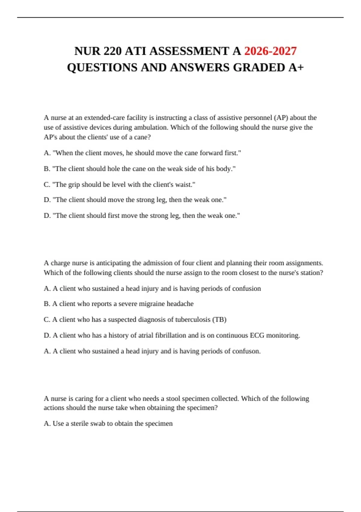 NUR 220 ATI ASSESSMENT A QUESTIONS AND ANSWERS GRADED A+