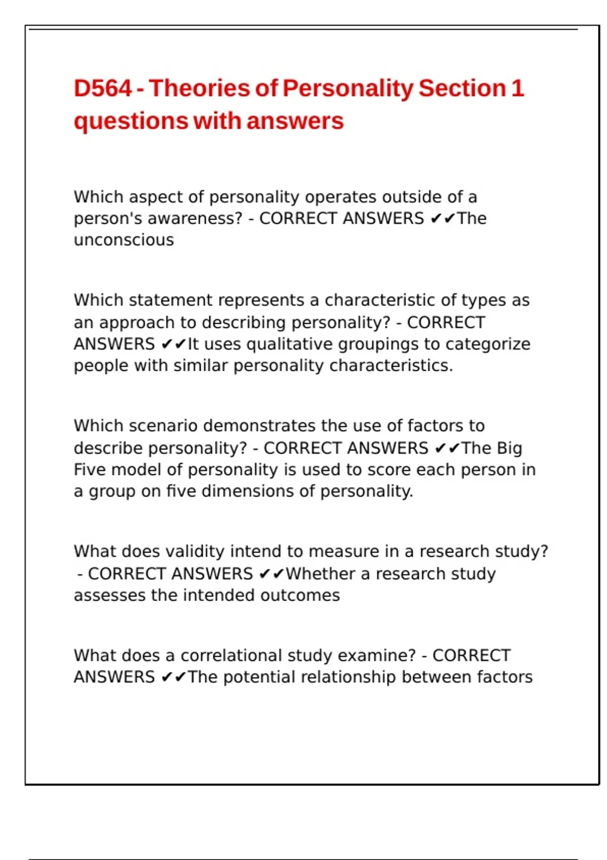 personality? - CORRECT ANSWERS ✔✔How people label |\ |\ |\ |\ |\ |\ |\