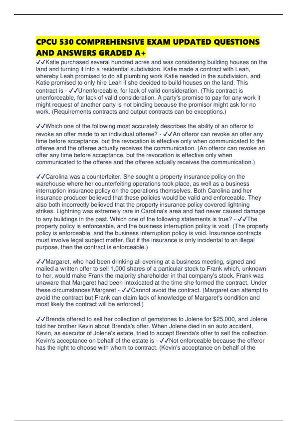 CPCU 530 COMPREHENSIVE EXAM UPDATED QUESTIONS AND ANSWERS GRADED A+