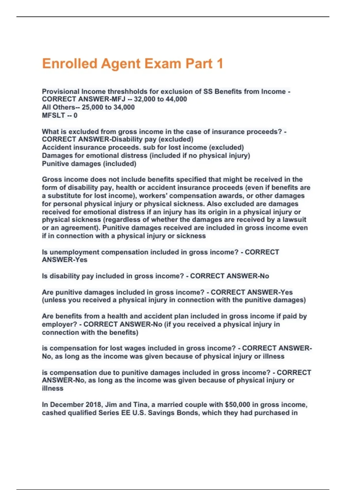 Enrolled Agent Exam Part 1 Questions And Answers With Verified Study Solutions Rated A+