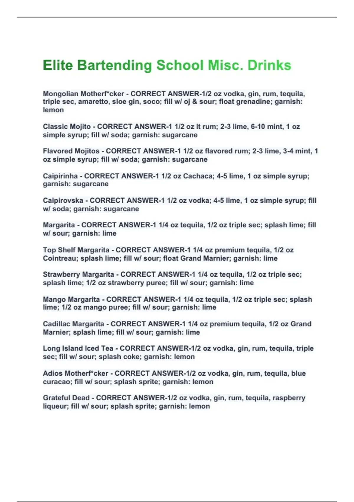 Top Shelf Margarita - CORRECT ANSWER-1 1/4 oz premium tequila, 1/2 oz