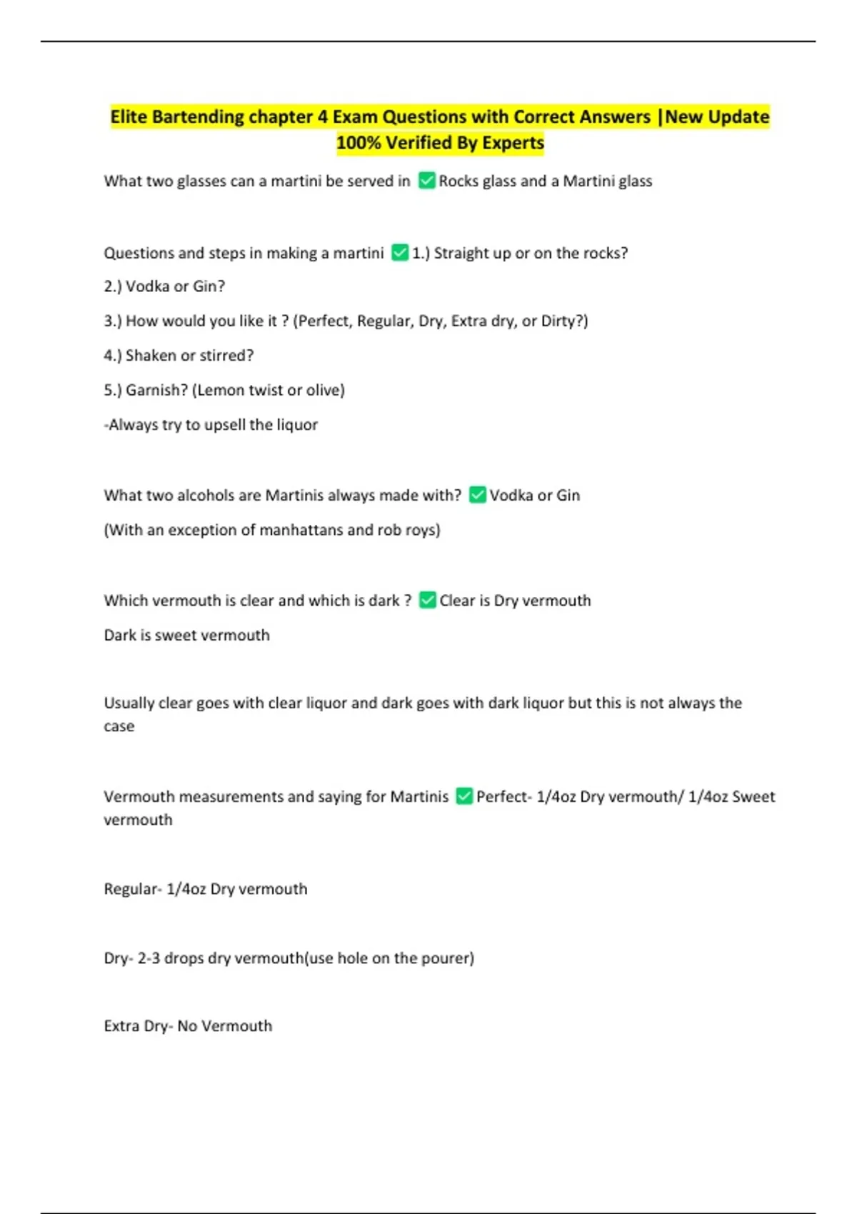 Elite Bartending chapter 4 Exam Questions with Correct Answers |New Update