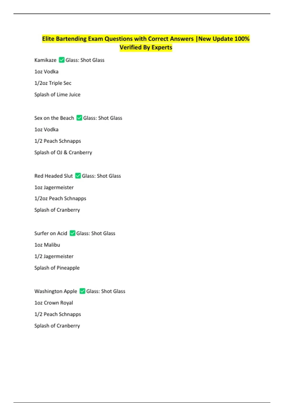 Elite Bartending Exam Questions with Correct Answers |New Update 100%