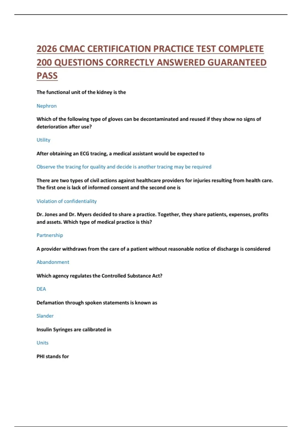 2026 CMAC CERTIFICATION PRACTICE TEST COMPLETE