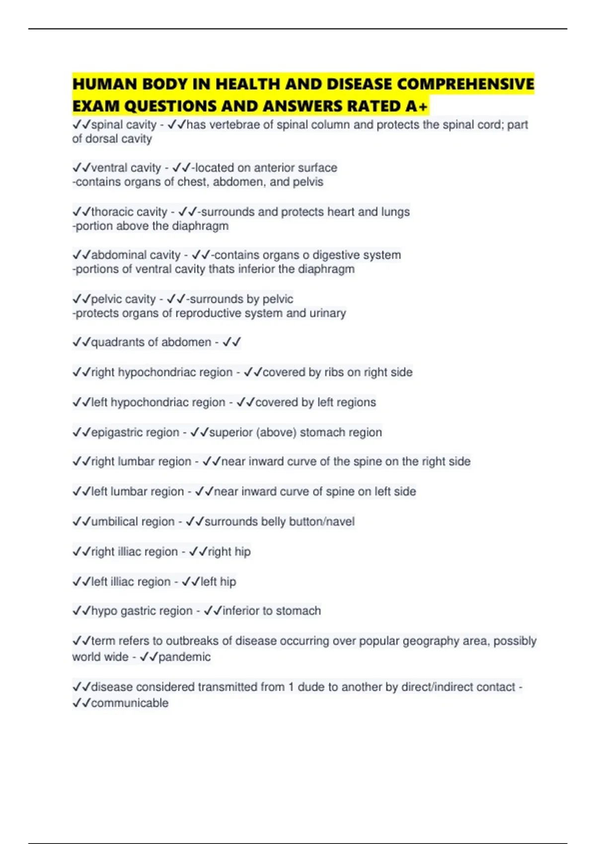 HUMAN BODY IN HEALTH AND DISEASE COMPREHENSIVE EXAM QUESTIONS AND ANSWERS RATED A+