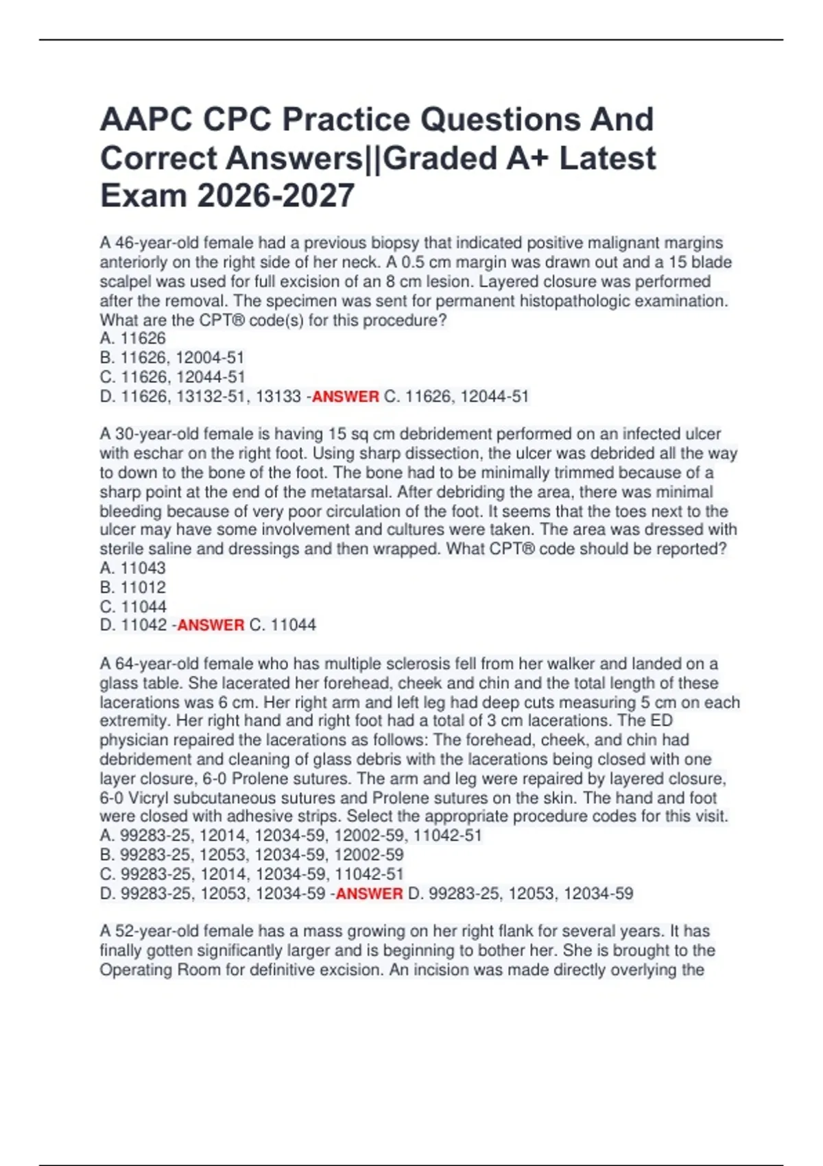 AAPC CPC Practice Questions And Correct Answers||Graded A+ Latest Exam