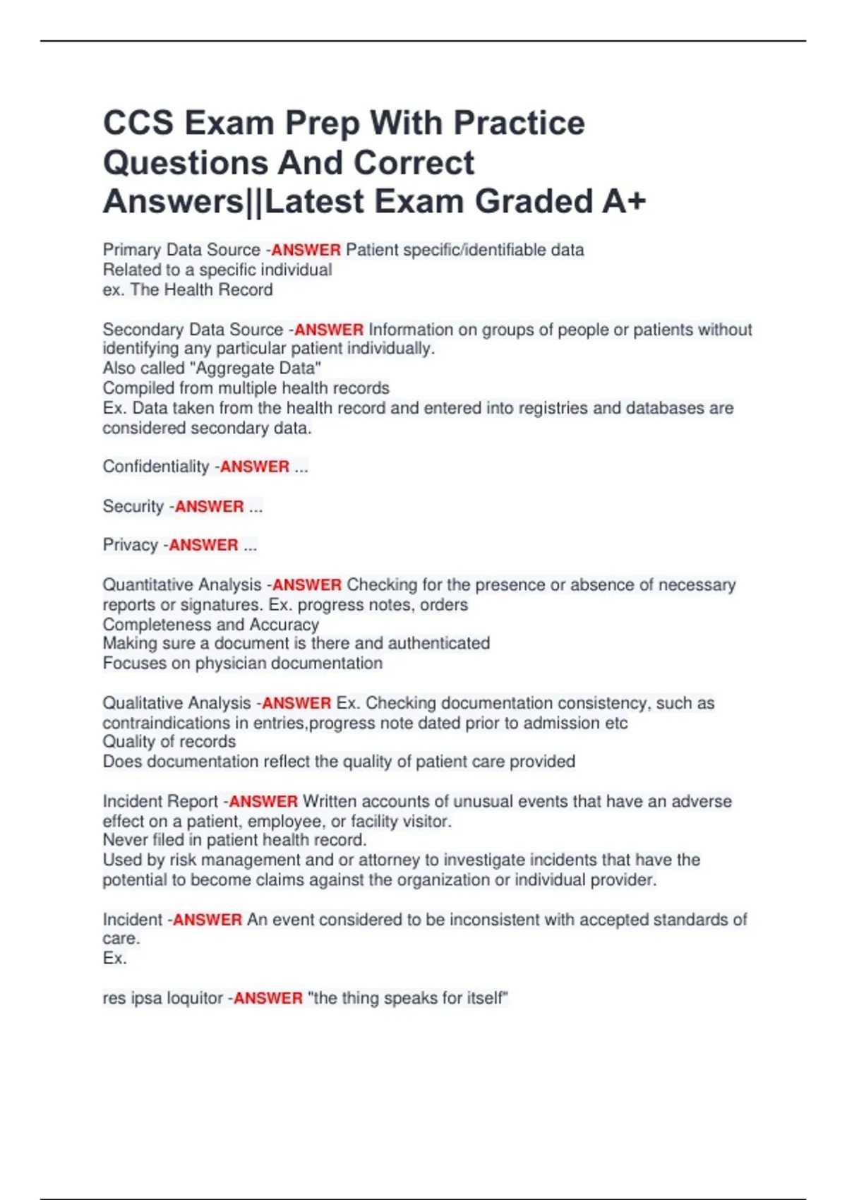 CCS Exam Prep With Practice Questions And Correct Answers||Latest Exam Graded A+