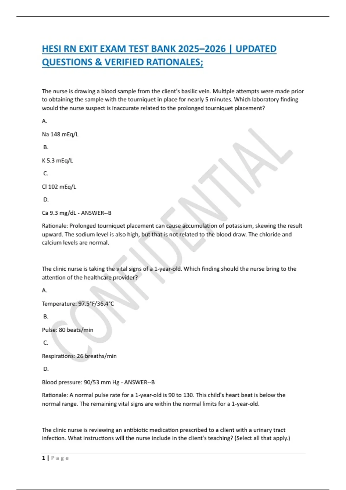 HESI RN Exit Exam Test Bank : Updated Questions & Verified Rationales