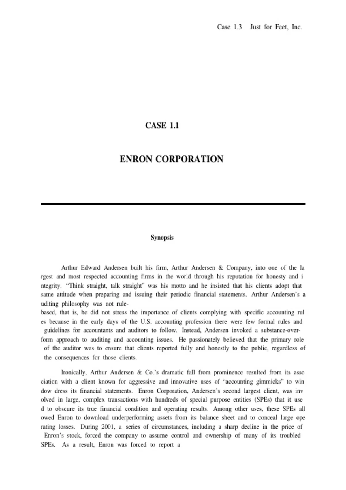 VClearly,VtheVEnronVcaseVsatisfiesVthoseVcriteria.V TheVpurposeVofVpresentingVsuchVaVcaseVearlyVin