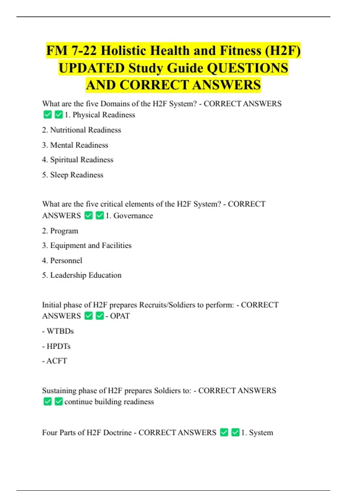 Four Parts of H2F Doctrine - CORRECT ANSWERS 1. System