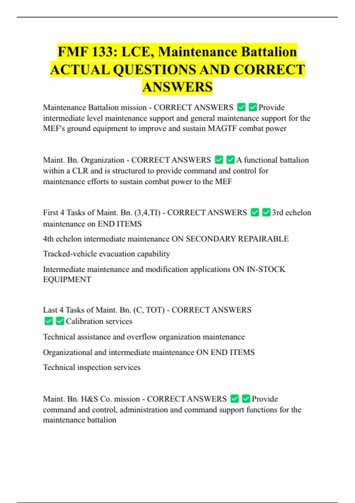 Maintenance Battalion mission - CORRECT ANSWERS Provide
