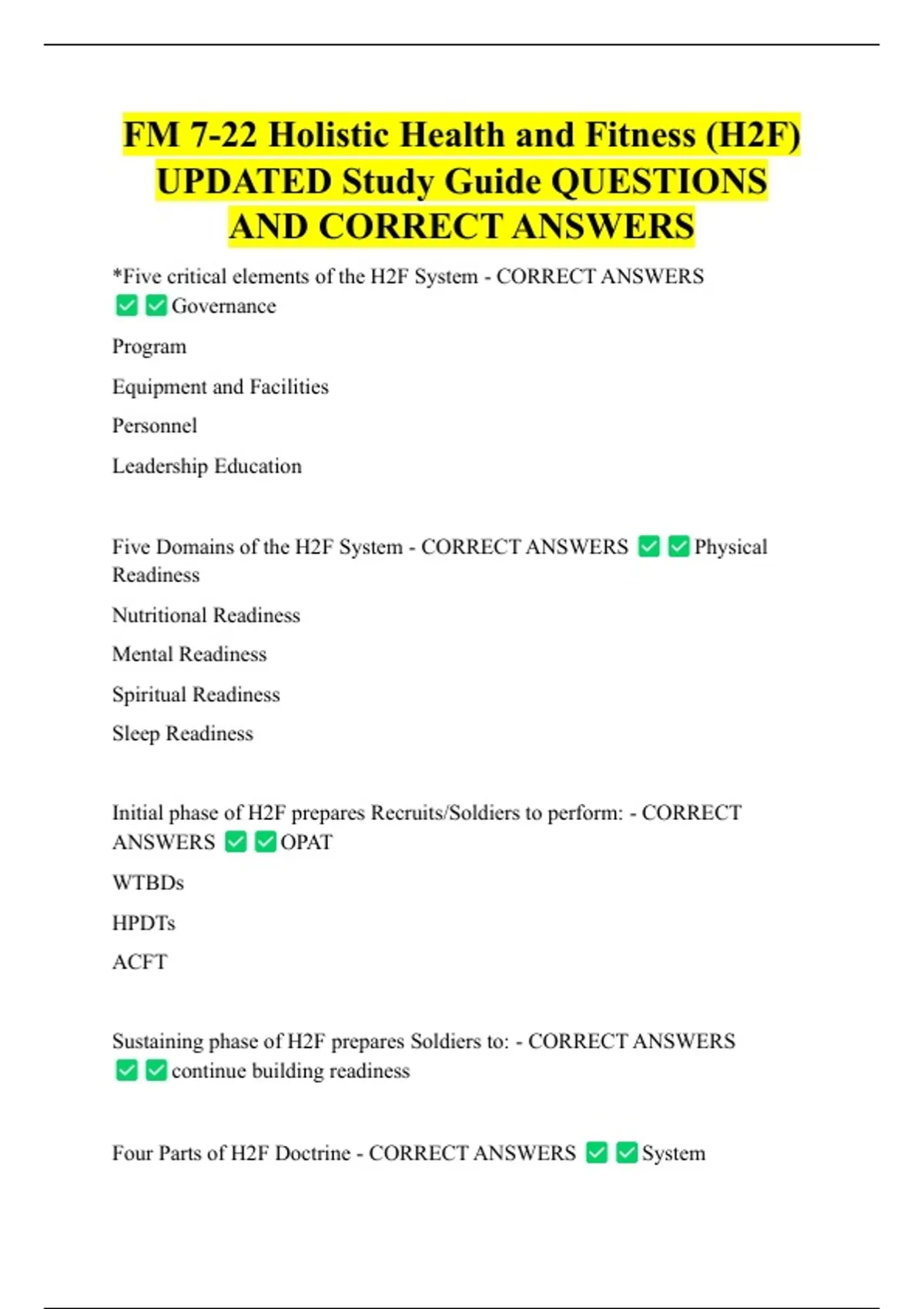 Four Parts of H2F Doctrine - CORRECT ANSWERS System