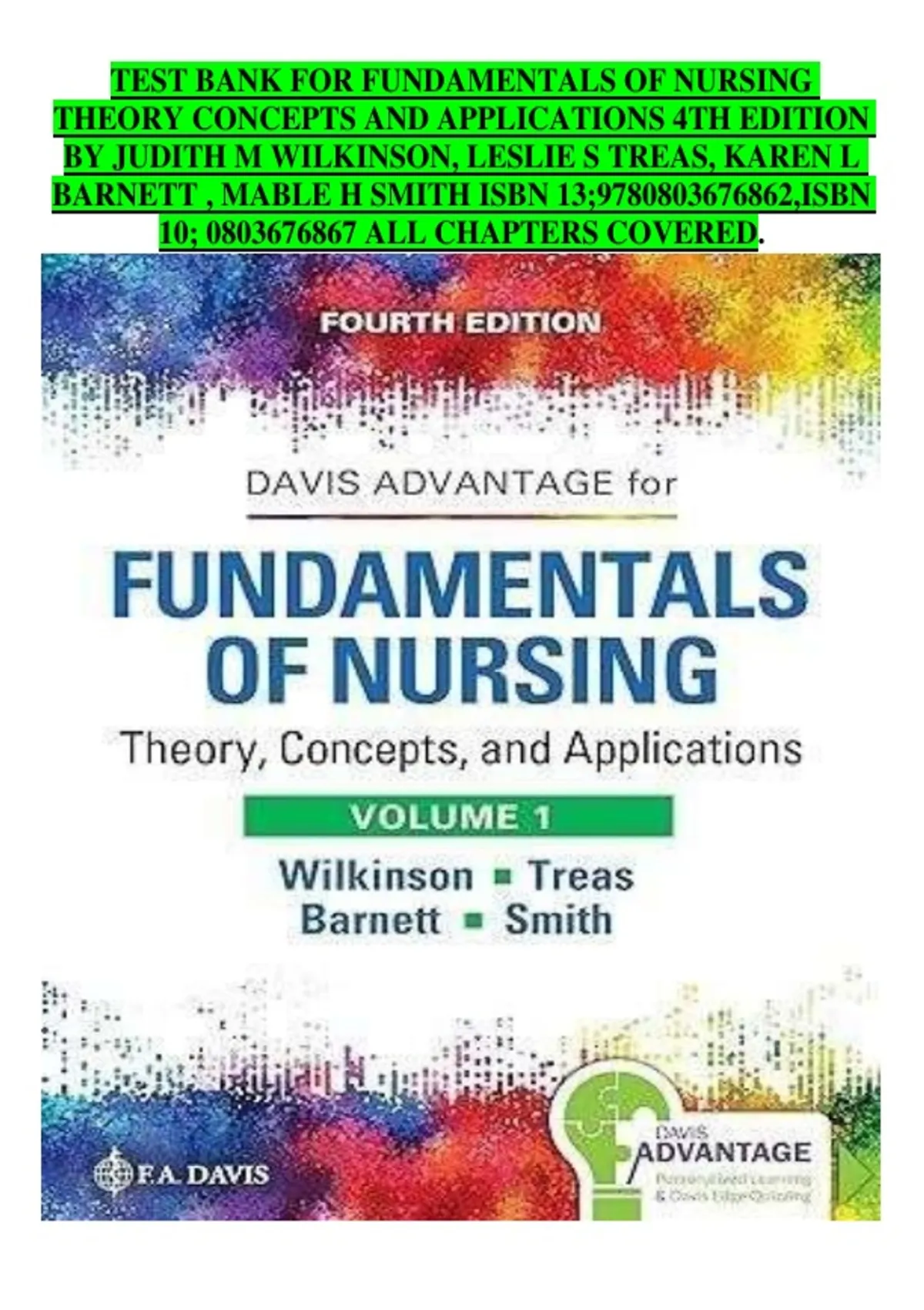 Fundamentals of Nursing: Theory, Concepts, and Applications (4th Edition) – ISBN 9780803676862 – Comprehensive Test Bank Covering All Chapters