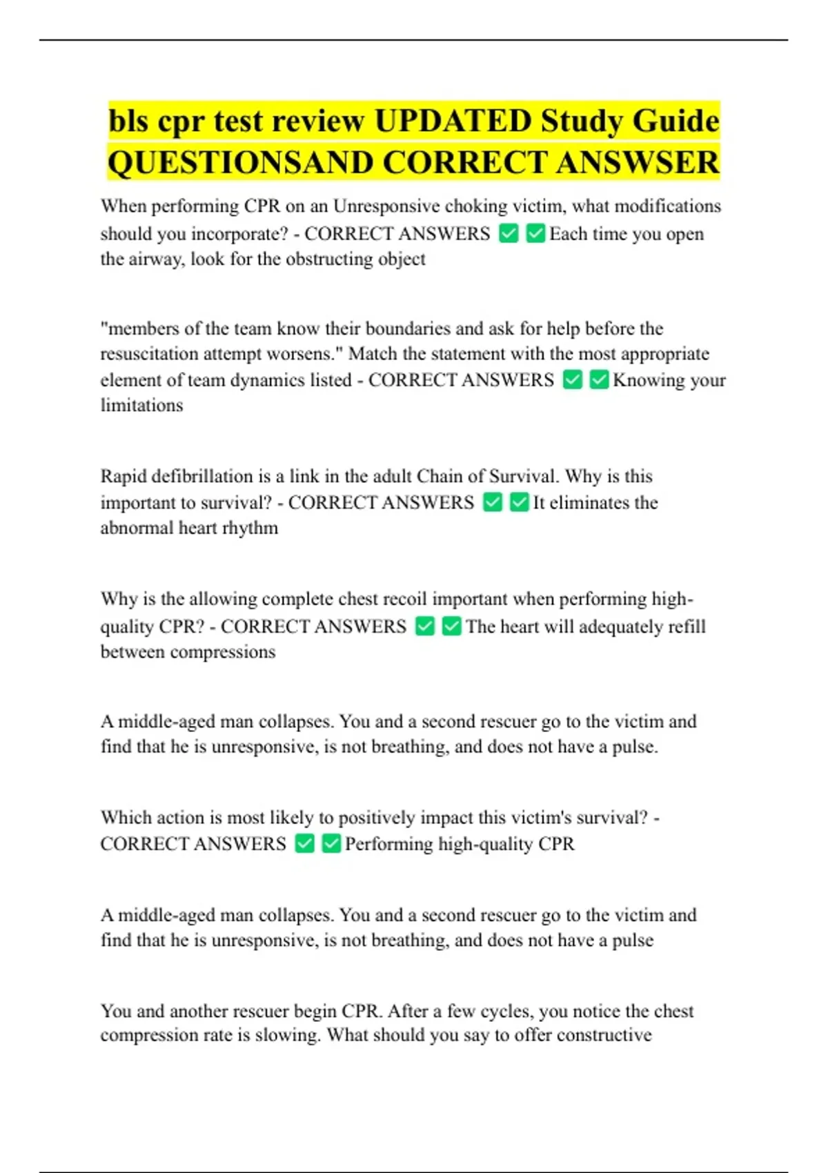 bls cpr test review UPDATED Study Guide
