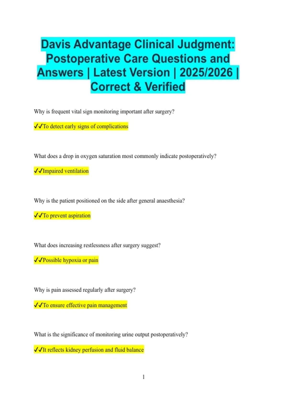 Postoperative Care Questions and