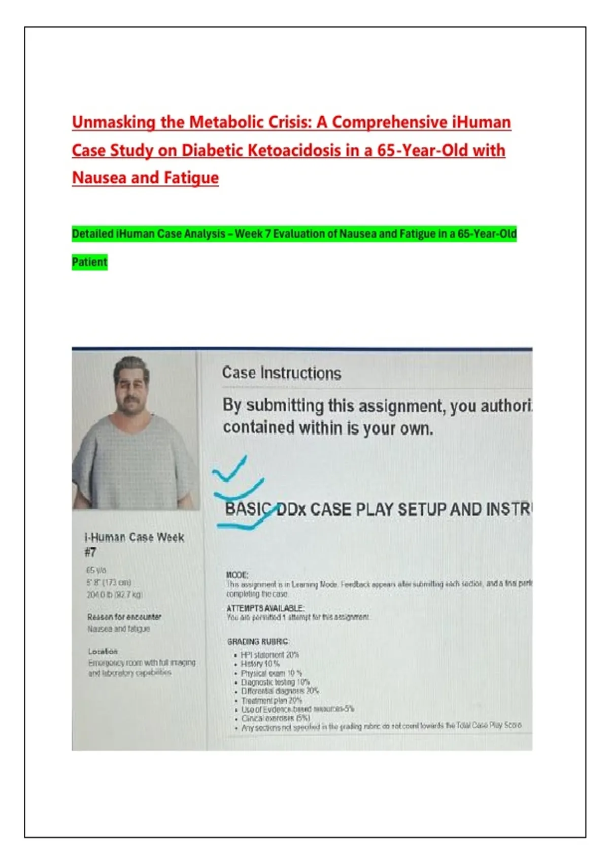 Unmasking the Metabolic Crisis: A Comprehensive iHuman Case Study on Diabetic Ketoacidosis in a 65-Year-Old with Nausea and Fatigue Detailed iHuman Case Analysis – Week 7 Evaluation of Nausea and Fatigue in a 65-Year-Old Patient