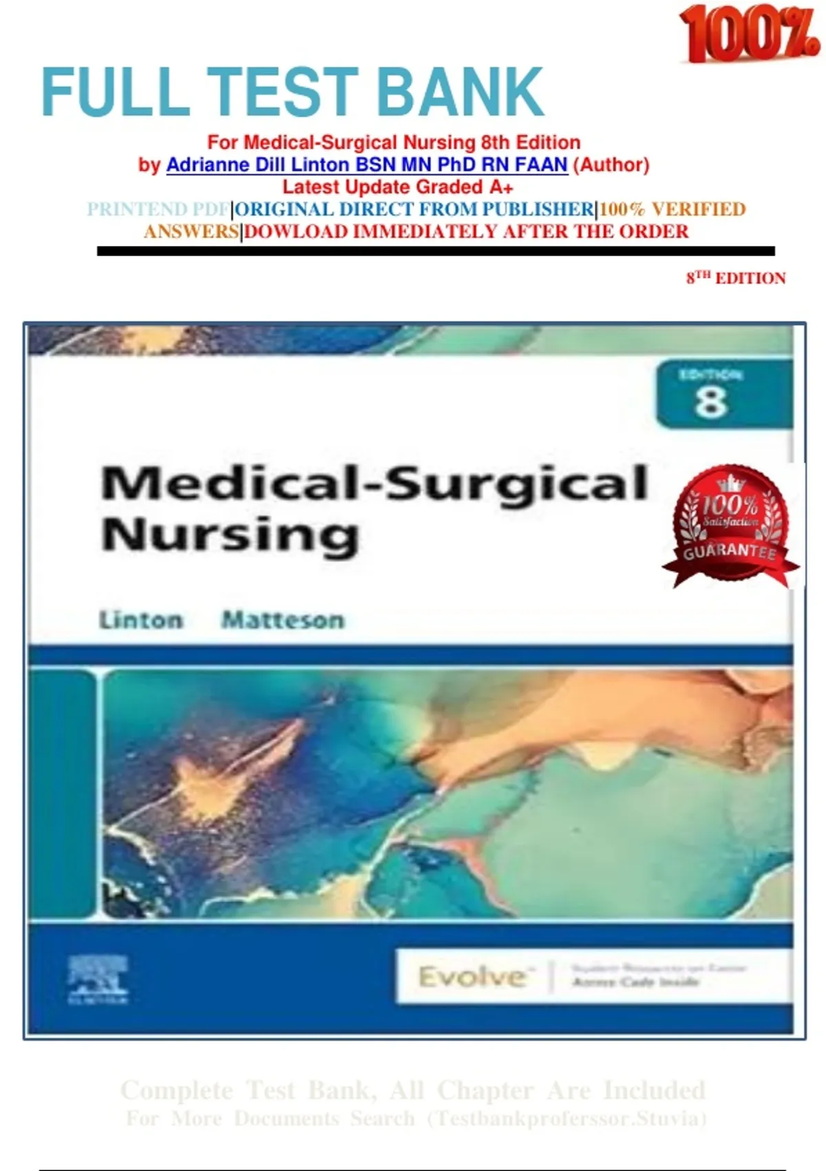 FULL TEST BANK For Medical-Surgical Nursing 8th Edition by Adrianne Dill Linton BSN MN PhD RN FAAN (Author) Latest Update Graded A+