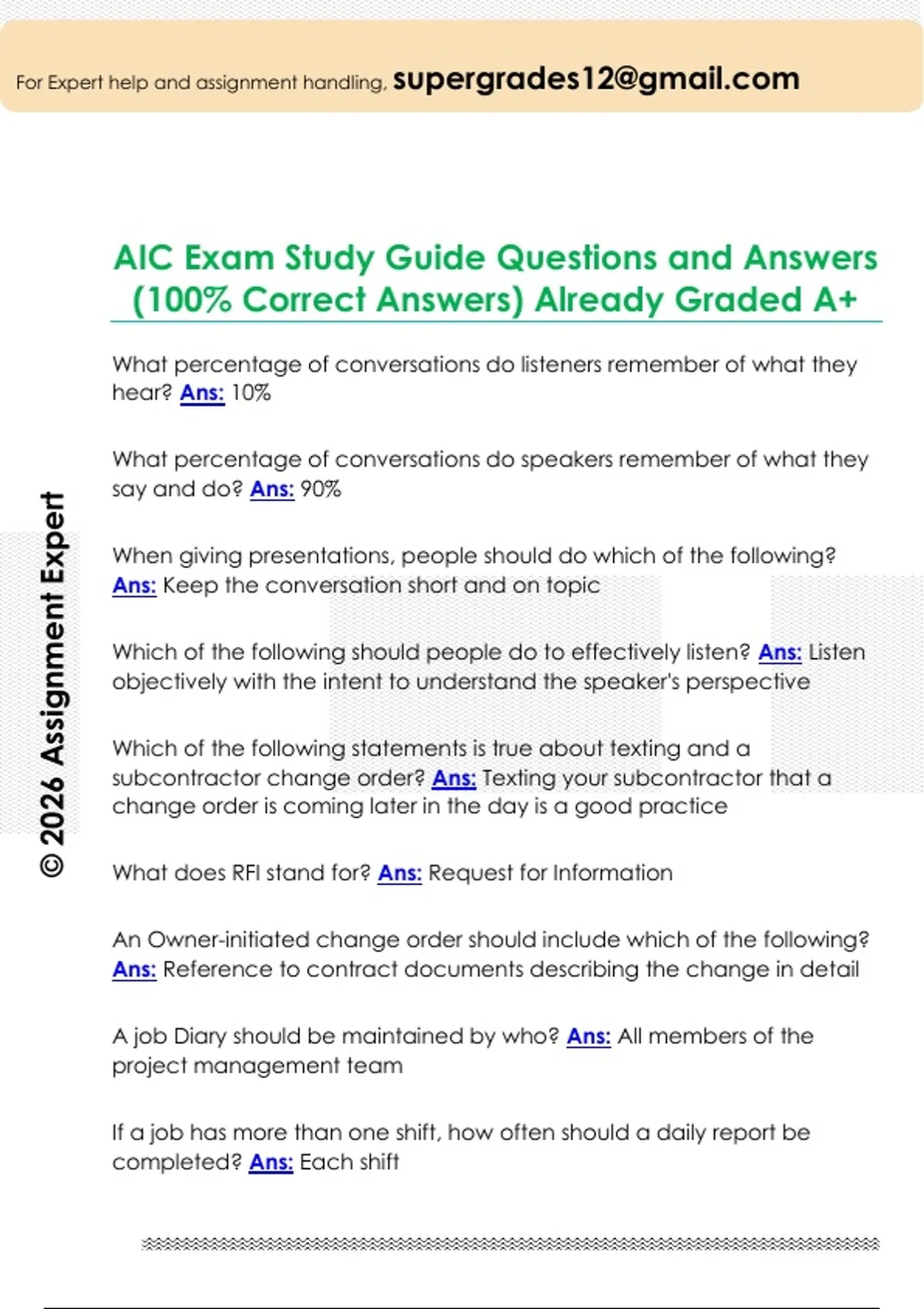 AIC Exam Study Guide Questions and Answers (100% Correct Answers) Already Graded A+