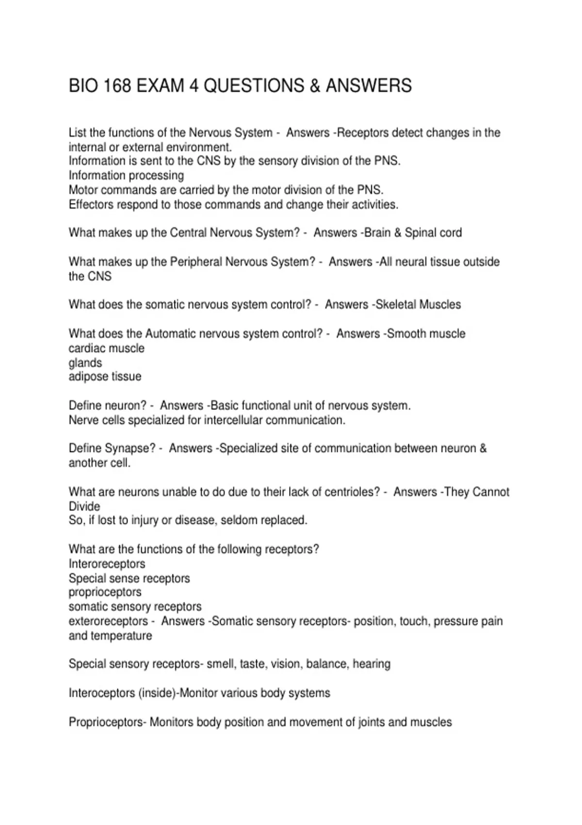 BIO 168 EXAM 4 QUESTIONS & ANSWERS